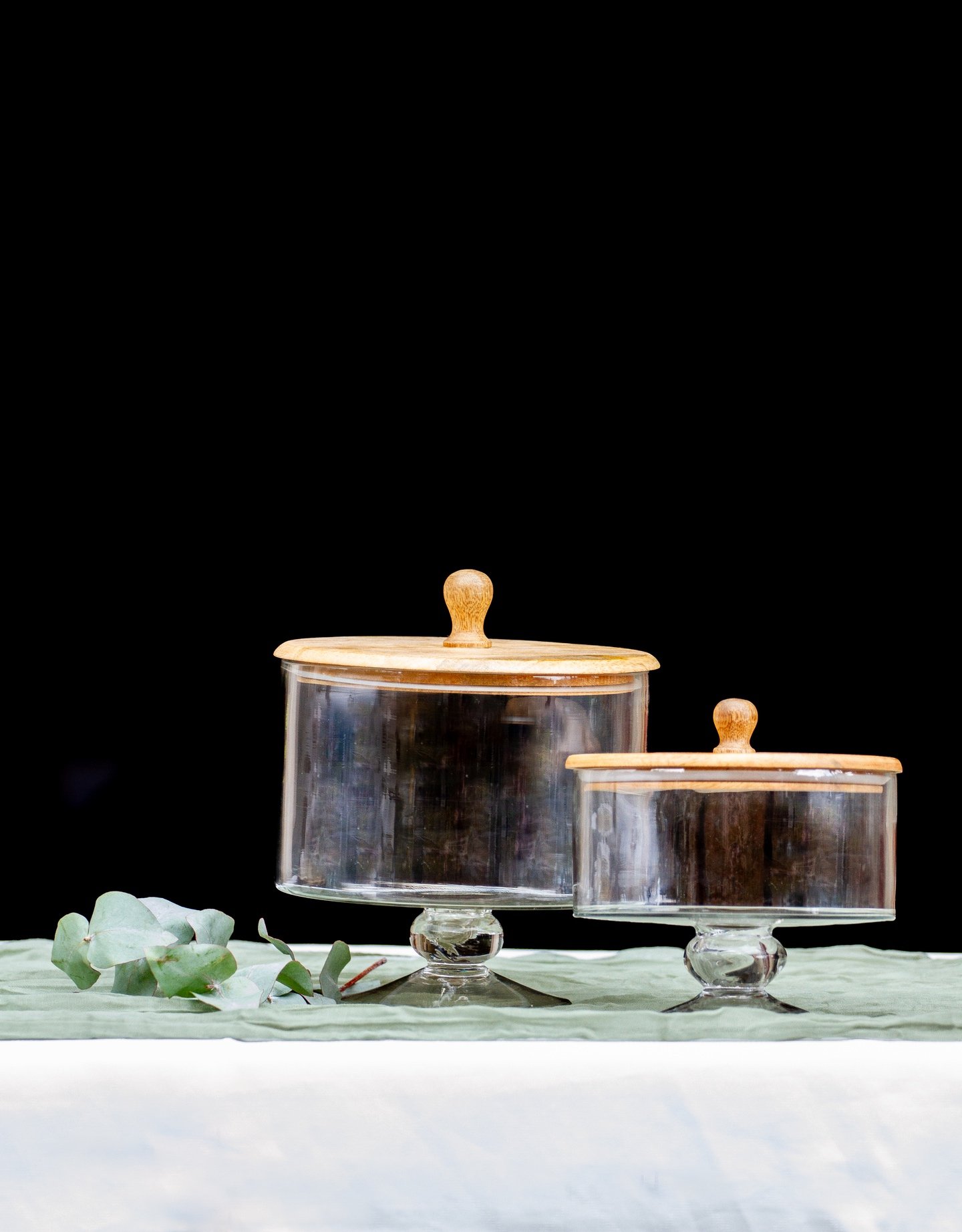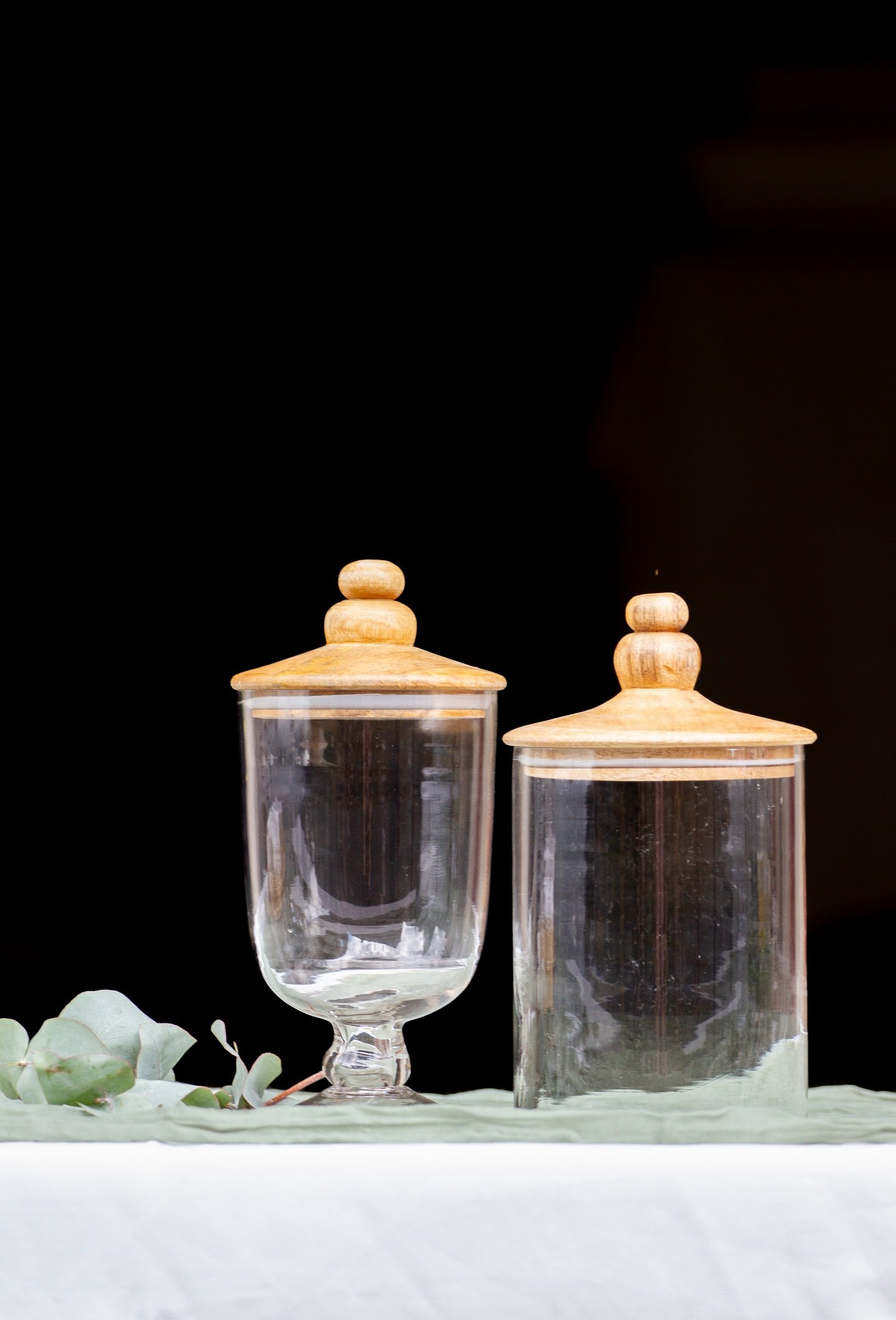 Handgefertigte Gläser mit Holzdeckel aus Mangoholz in 8 Designs. Vier Größen.